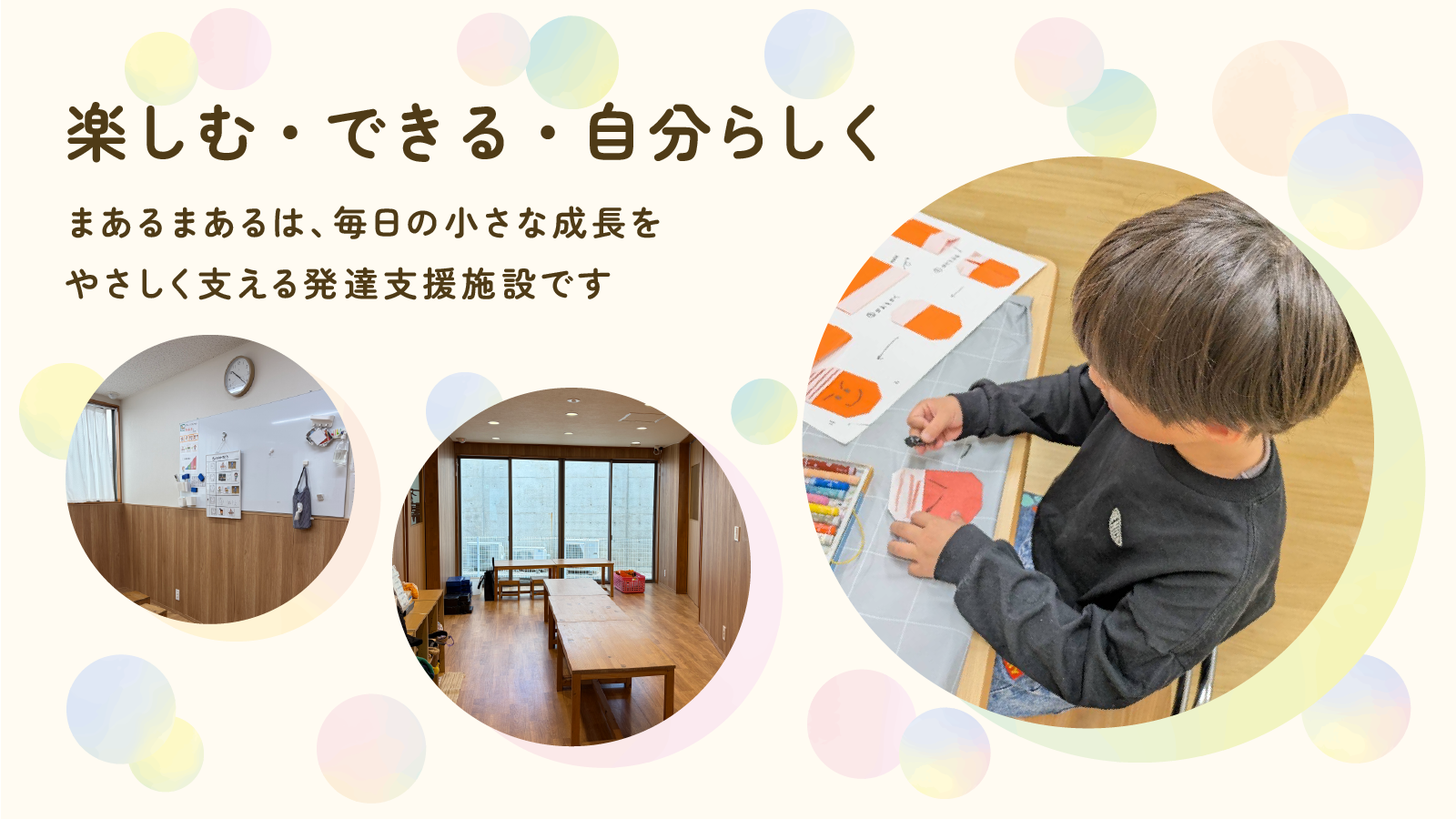 「できる」にまるを「できている」に丸をつけていくことで、お子さんの発達の土台を作り、自信を育み自立へと繋げていきます。